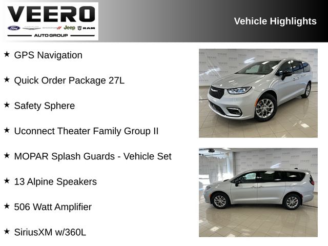 Sales Tax, Title, License Fee, Registration Fee, $350 Dealer Documentary Fee, Finance Charges and Emission Testing Fees (if applicable) are additional to the advertised price. Check out the rest of the features on this vehicle. MOPAR Splash Guards - Vehicle Set (Front Splash Guards and Rear Splash Guards), Quick Order Package 27L, Safety Sphere (360 Surround View Camera System and ParkSense Front/Rear Park Assist w/Stop), Uconnect Theater Family Group II (13 Alpine Speakers, 3-Channel Video Remote Control, 4G LTE Wi-Fi Hot Spot, 506 Watt Amplifier, Amazon Fire TV Built-In, GPS Navigation, Integrated Voice Command w/Bluetooth, Power Adjust 8-Way Front Passenger Seat, Radio: Uconnect 5 Nav w/10.1" Display, Seatback Video Screens, SiriusXM w/360L, 1 Year Trial (Registration Required), 10.1" Touchscreen Display, 115V Auxiliary Power Outlet, 220 Amp Alternator, 3rd Row USB Charge Port, Apple CarPlay, Connected Travel & Traffic Services, Connectivity - US/Canada, Disassociated Touchscreen Display, For Details, Visit DriveUconnect.com, Front Passenger Auto Advance N Return, Google Android Auto, GPS Antenna Input, HD Radio, High Definition Multimedia Interface, Integrated Active Noise Cancellation, Integrated Center Stack Radio, Power 2-Way Passenger Lumbar Adjust, USB Host Flip, and Video USB Port), 18" x 7.5" Painted Aluminum Wheels, Heated front seats, Heated steering wheel, Memory seat, Power driver seat, Power Liftgate, 3.73 Axle Ratio, 3rd Row Seating, 4-Wheel Disc Brakes, 6 Speakers, ABS brakes, Air Conditioning, AM/FM radio: SiriusXM, Apple CarPlay/Android Auto, Auto-dimming Rear-View mirror, Automatic temperature control, AWD Suspension, Black Seats, Brake assist, Bumpers: body-color, Caprice Leatherette Bucket Seats, Compass, Delay-off headlights, Driver door bin, Driver vanity mirror, Driver's Seat Mounted Armrest, Dual front impact airbags, Dual front side impact airbags, Electronic Stability Control, Emergency communication system: Chrysler Connect, Engine Block Heater, Four wheel independent suspension, Front anti-roll bar, Front Bucket Seats, Front dual zone A/C, Front fog lights, Front reading lights, Fully automatic headlights, Garage door transmitter, Heated door mirrors, Illuminated entry, Knee airbag, Low tire pressure warning, Occupant sensing airbag, Outside temperature display, Overhead airbag, Overhead console, Panic alarm, ParkView Rear Back-Up Camera, Passenger door bin, Passenger seat mounted armrest, Passenger vanity mirror, Power door mirrors, Power steering, Power windows, Radio data system, Radio: Uconnect 5 w/10.1" Display, Rain sensing wipers, Rear air conditioning, Rear reading lights, Rear window defroster, Rear window wiper, Reclining 3rd row seat, Remote Keyless Entry, Security system, Speed control, Split folding rear seat, Spoiler, Steering wheel mounted audio controls, Tachometer, Telescoping steering wheel, Tilt steering wheel, Traction control, Trip computer, Turn signal indicator mirrors, Variably intermittent wipers, and VoltmeteR. Price includes: $2250 - 2026 National Retail Bonus Cash . Exp. 01/05/2026 $500 - 2026 Midwest BC Regional Retail Bonus Cash. Exp. 01/05/2026 $750 - 2026 National Bonus Cash . Exp. 01/05/2026