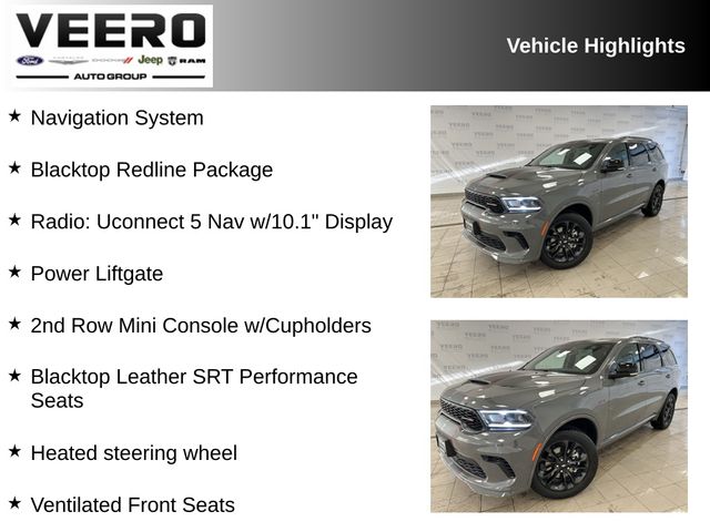 The advanced technology suite includes a state-of-the-art Uconnect 5 navigation system with a large 10.1-inch display, wireless charging, and a suite of driver-assistance features that provide added confidence and peace of mind on the road. Whether you're navigating the daily commute or embarking on a family adventure, this Durango is ready to handle it all with style and capability.