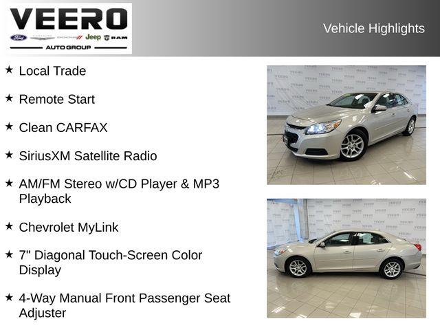 **Clean CARFAX**Local Trade**FWD**Champagne Silver Metallic Exterior**Cocoa/Light Neutral Leatherette**Remote Start**Power 8-Way Driver Seat**Backup Camera**7" Diagonal Touch-Screen Color Display**AM/FM Stereo w/CD Player & MP3 Playback, Chevrolet MyLink, SiriusXM Satellite Radio, Universal Home Remote, Power Convenience Package, Preferred Equipment Group 1LT.