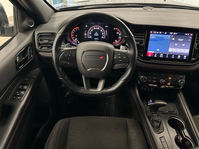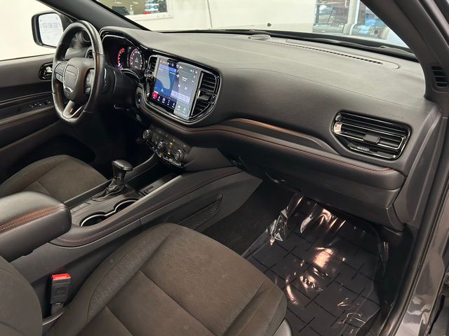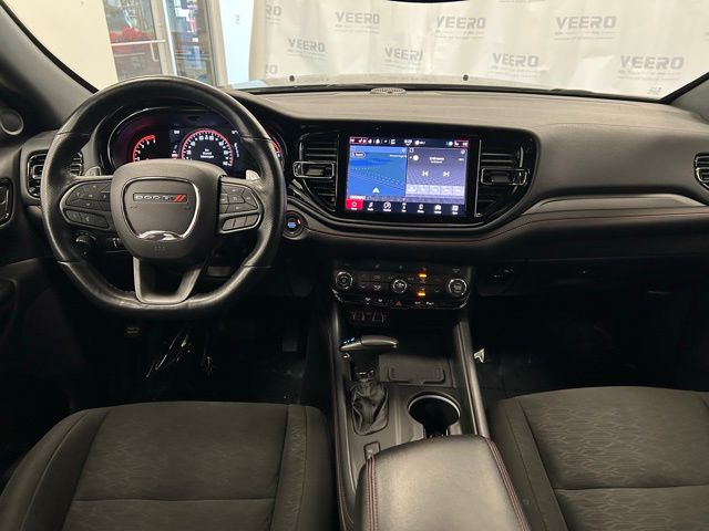 Stepping inside, you'll be greeted by a well-appointed interior that combines style and functionality. The Durango R/T offers a comprehensive suite of advanced technologies, including a state-of-the-art navigation system, a premium audio system, and seamless smartphone integration through Apple CarPlay and Android Auto.