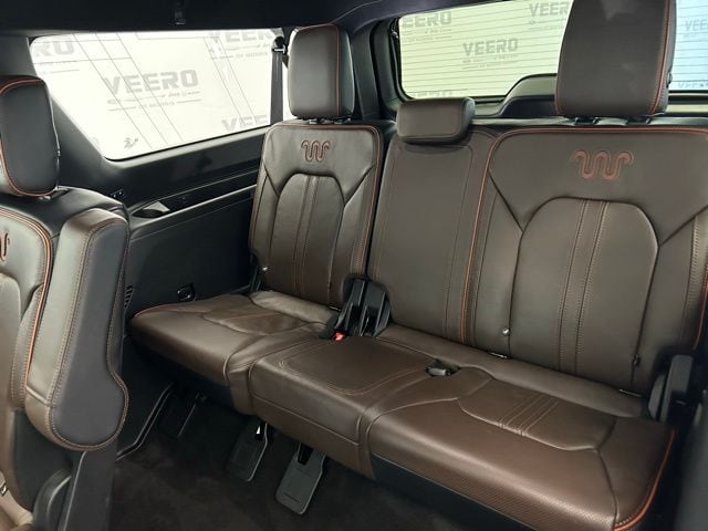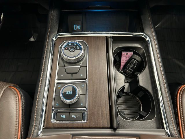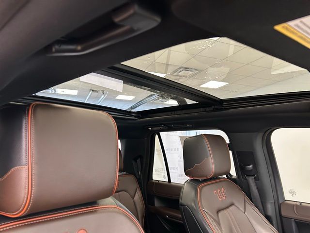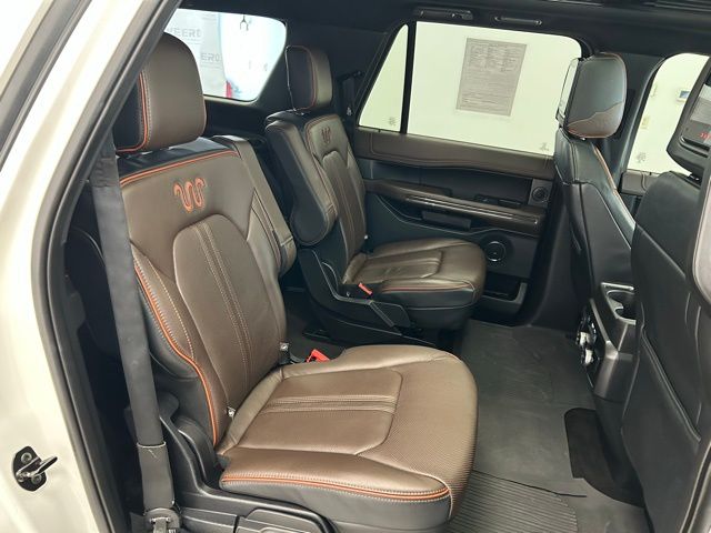 The Expedition Max King Ranch's impressive capabilities are matched by its luxurious interior, featuring heated and ventilated front captain's chairs, a heated steering wheel, and a premium B&O sound system. The spacious cabin offers seating for up to eight, with a versatile 3rd-row seat and a power liftgate for easy loading and unloading.