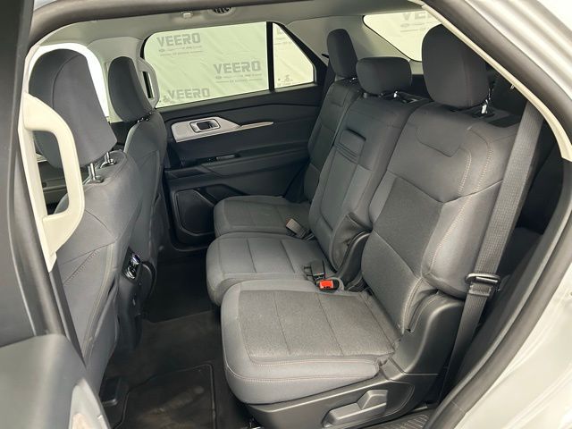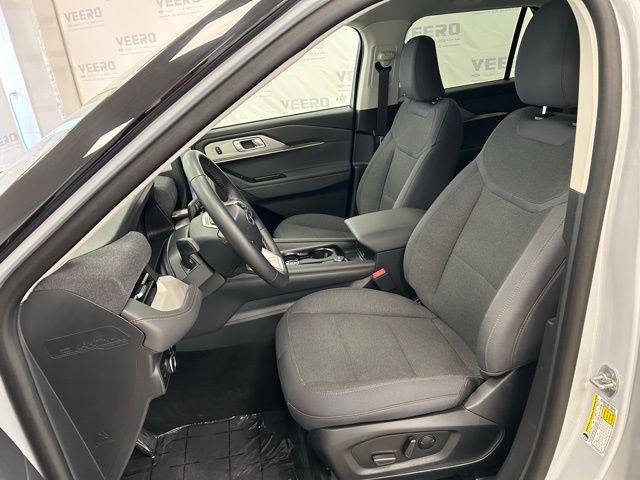 The Explorer Active's striking exterior in White, combined with its unique styling cues, creates a bold and modern presence on the road. Step inside and discover the Unique Heated Cloth Captain's Chairs, providing exceptional comfort and style.